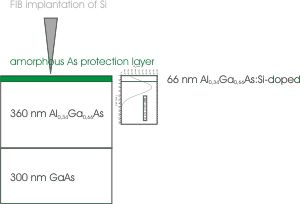 Experimental details: Si is implanted by FIB (focused ion beam) on an amorphous As layer which will be removed after the implantation process.