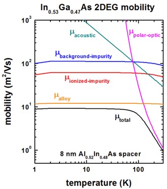 Note that the 2DEG is located in an alloy, i.e. InGaAs. Thus we expect that alloy scattering has a significant effect on the total mobility.