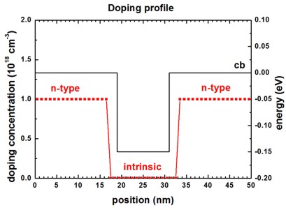 - 0 nm - 17 nm: 17 nm n-doped region with n = 1 * 1018