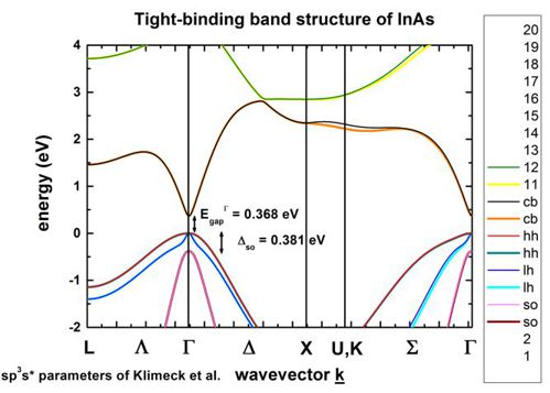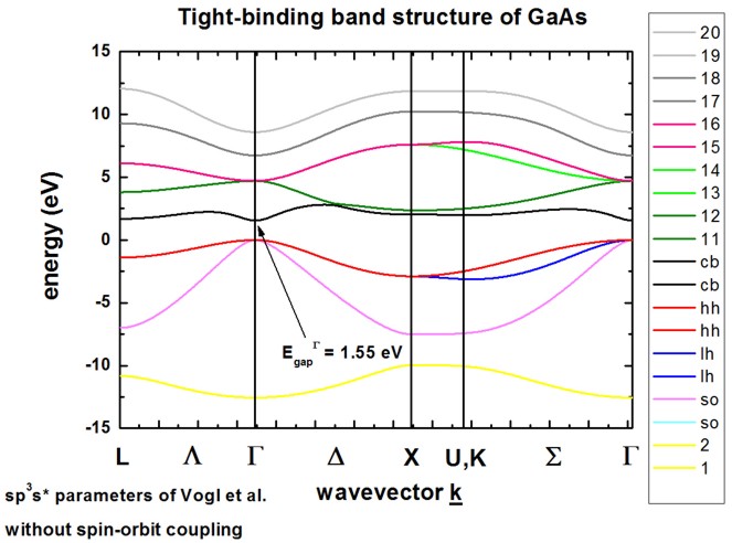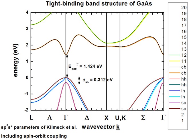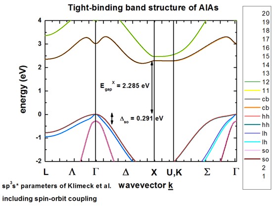 - GaAs, GaP and AlAs including spin-orbit coupling using the parameters