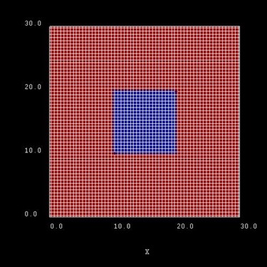 Here, the grid spacing is 0.5 nm, thus the quantum wire (blue area) consists